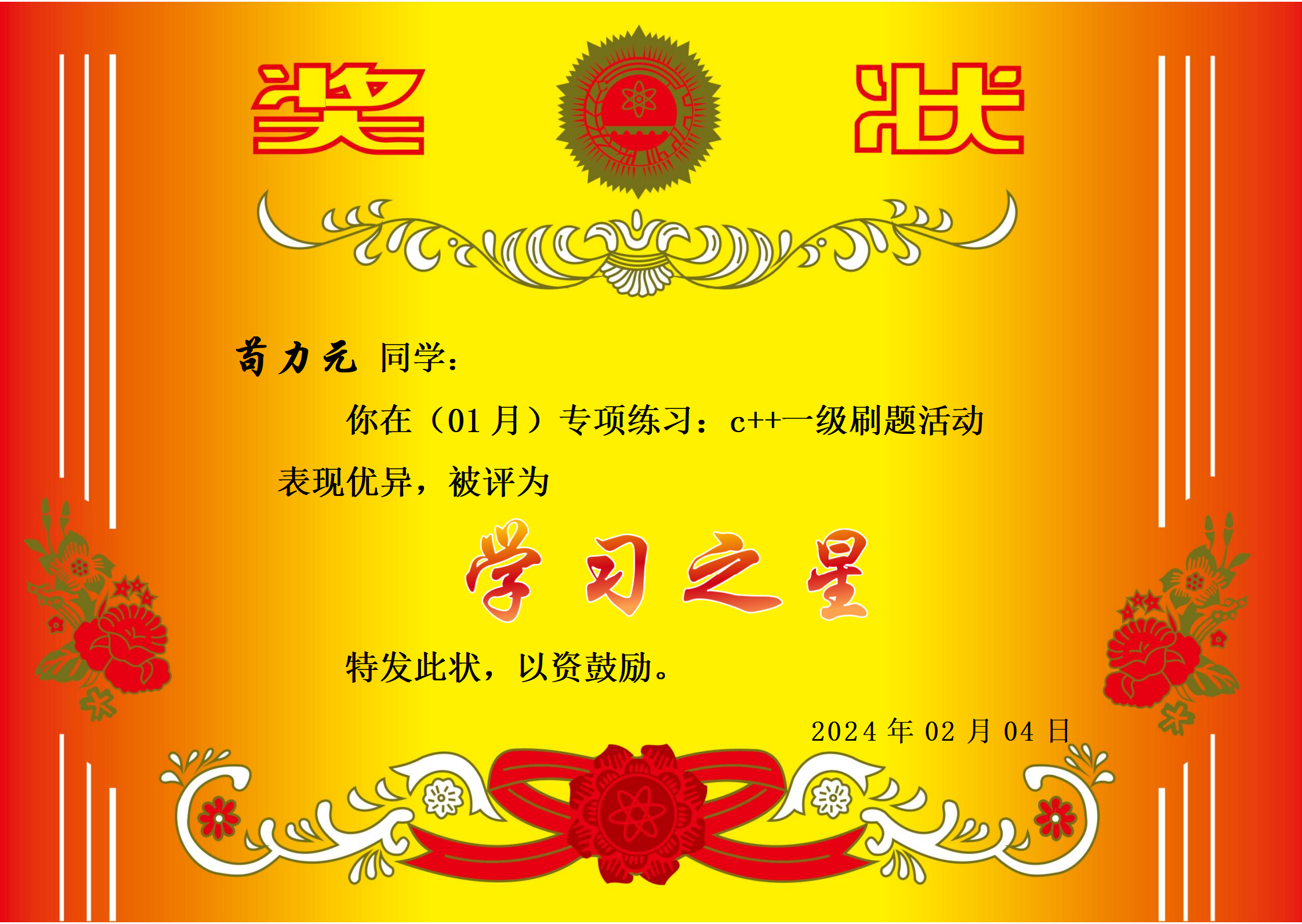 奖状后面补上。。。