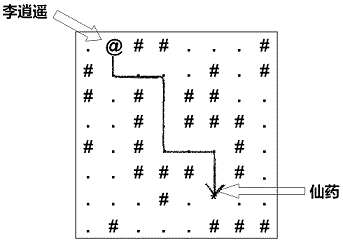 下图 显示了一个迷阵的样例及李逍遥找到仙药的路线。