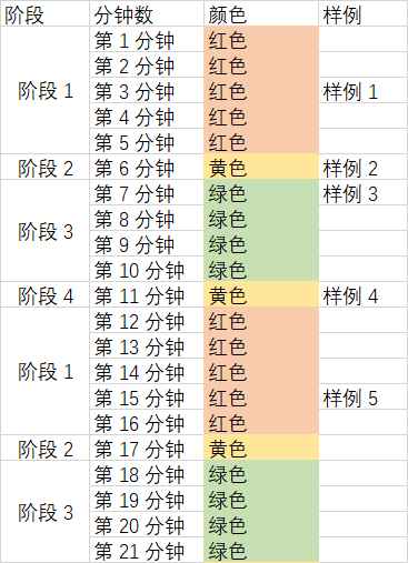 从七点半开始,这个红绿灯的每个周期会按照下面四个阶段变化: